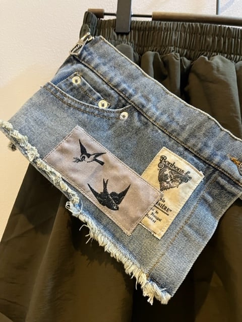 デニム部分は、手作業でのパッチワークなどのリメイク風な仕上げをしており、