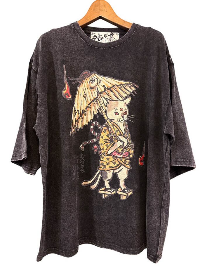 番傘猫 ピグメントTシャツ *うぃじゃぼーど*