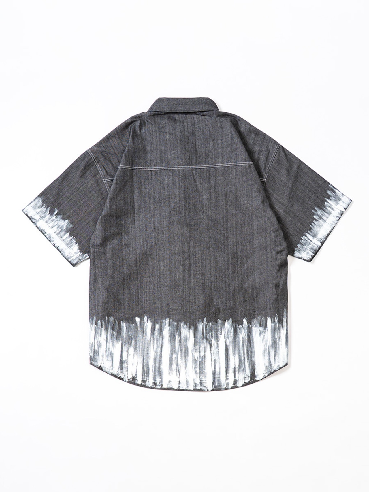 袖と裾にペイント加工を施したデニムシャツ。