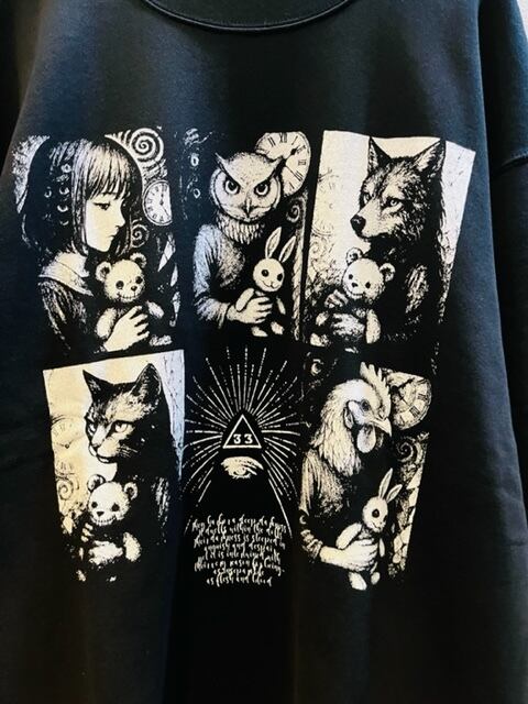 まるで呪われているかのような怪しい人形を抱いた様々な動物たちが描かれたOuijya boardらしいグラフィックの