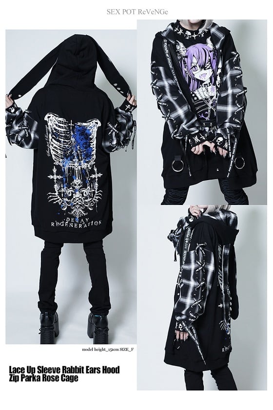 ROSE CAGE LACE UP SLEEVE RABBIT EARS HOODジップパーカ *SEXPOT ReVeNGe*☆送料無料対象商品☆