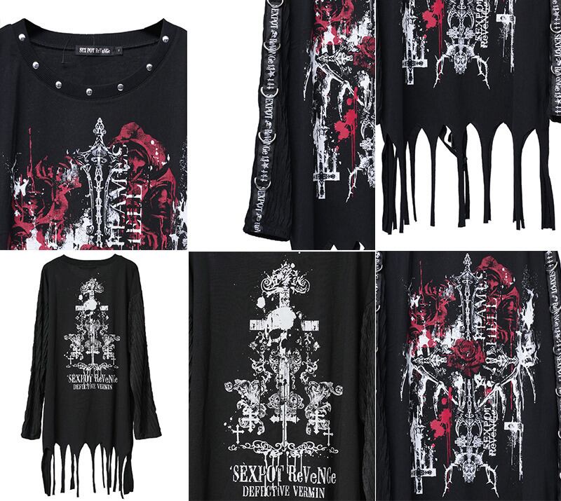 FLAMES HELL DESIGN SLEEVE GOTHIC PUNK WASHER カットソー *SEXPOT ReVeNGe*☆送料無料対象商品☆