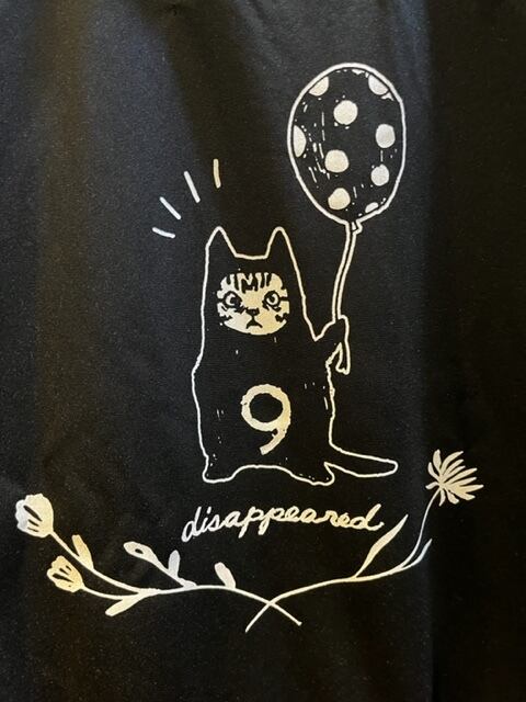 胸には子供の刺繍、背中には風船をもったねこさんのプリントの