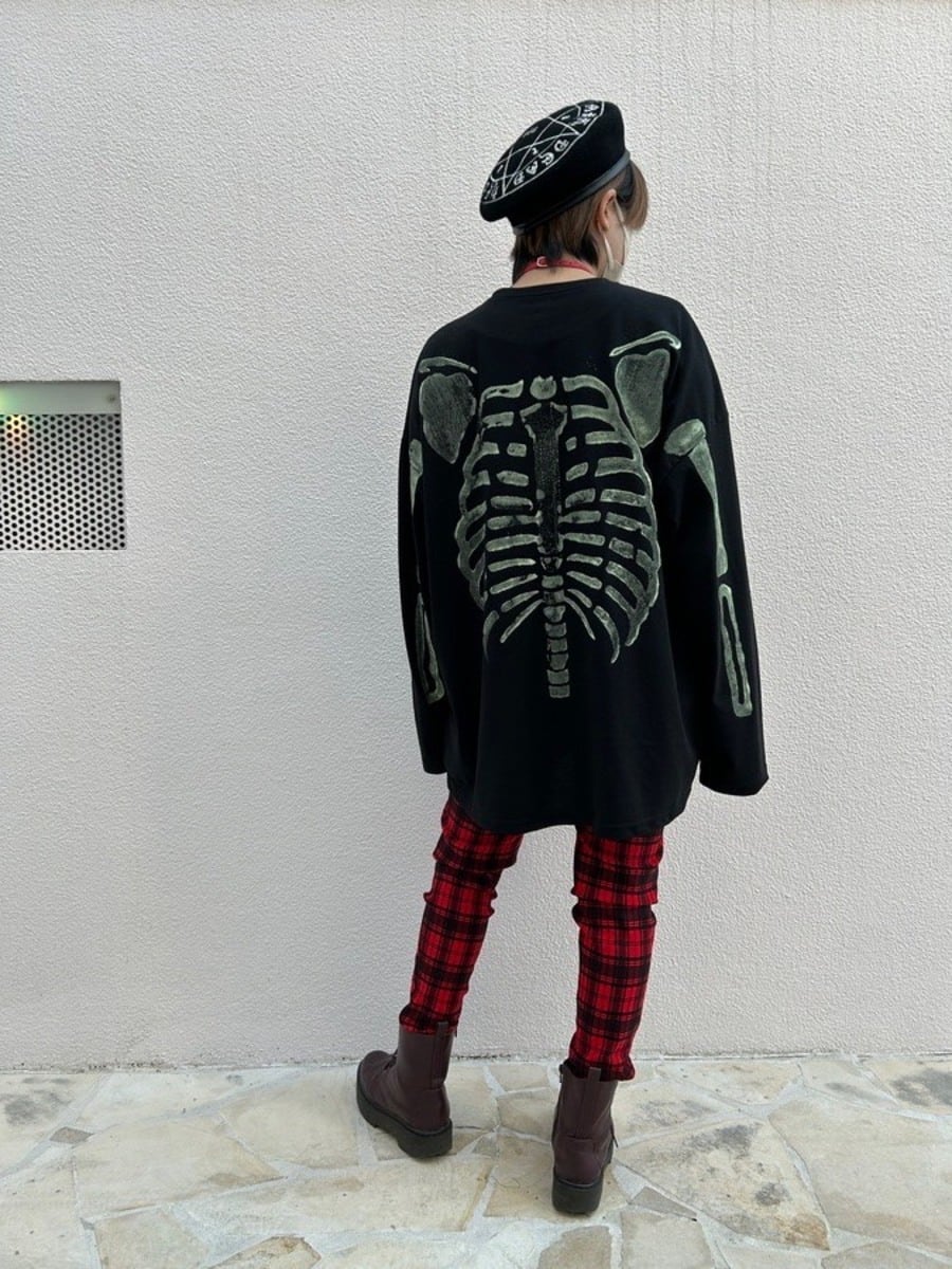 スケルトンのバックプリントが存在感抜群のロンT。