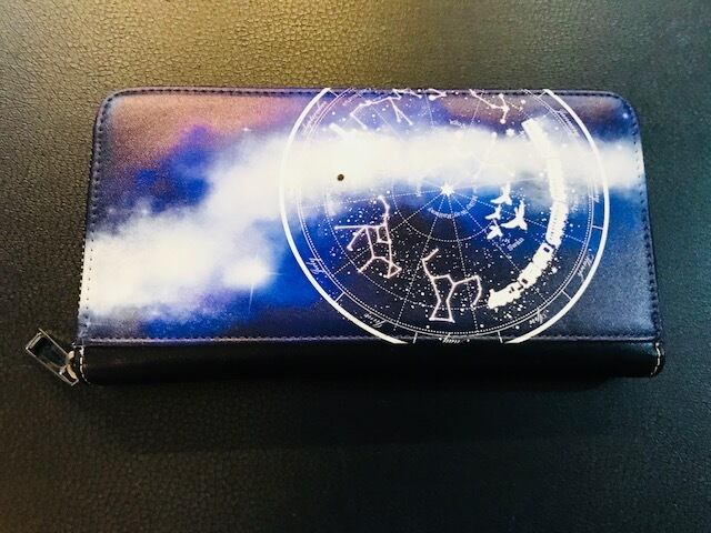 星座早見盤風のデザインの長財布。