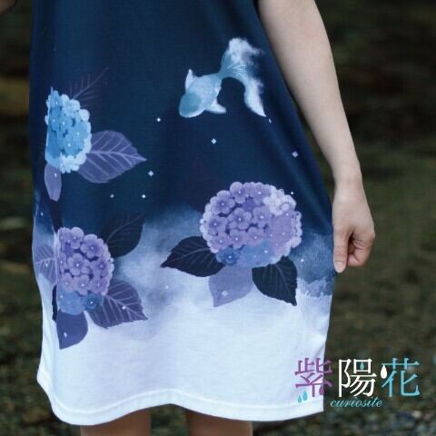 紫陽花と金魚Tシャツワンピース *curiosite*
