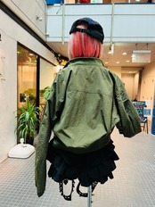 フロントのジップや襟をライダースデザインにしたMA-1。